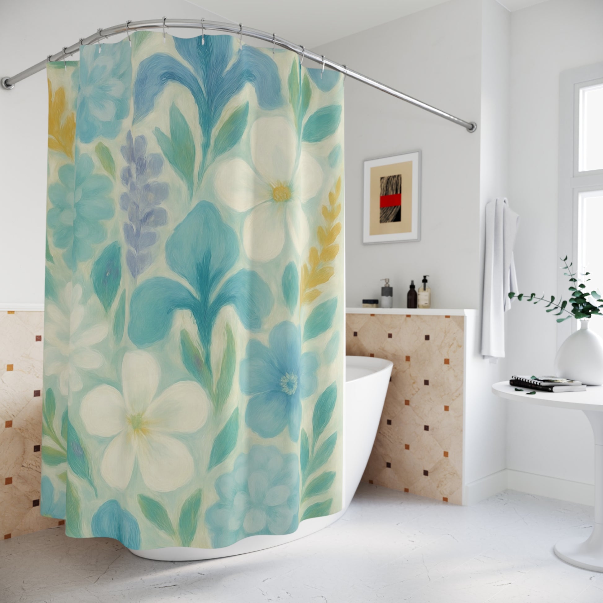 Transform your bathroom into a tranquil oasis with this stunning shower curtain. Crafted from durable polyester, it features a vibrant floral design that infuses any space with fresh, natural beauty. This shower curtain is perfect for adults seeking a serene atmosphere in their daily routines. Whether you're preparing for a cozy night in or hosting friends for a weekend gathering, this piece adds a touch of elegance and warmth. Ideal for seasonal refreshes, housewarming gifts, or to celebrate occasions like birthdays and holidays, it brings a cheerful vibe to any restroom. Embrace a moment of calm every time you step in for a shower!